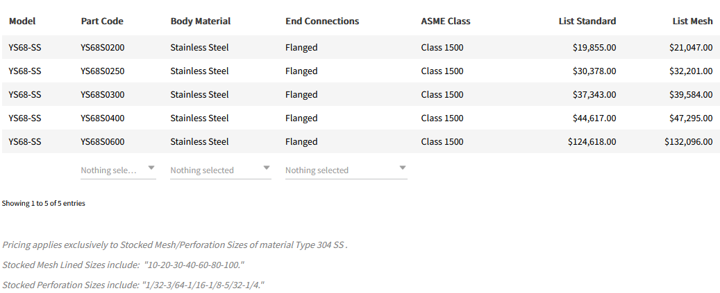 Titan - Model YS68-SS -Y Strainer