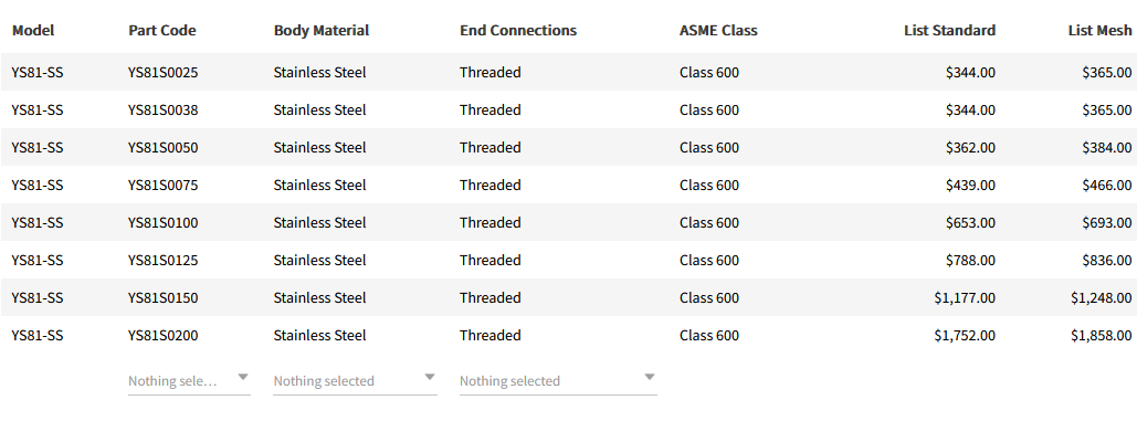 - Stainless Steel - ASTM A351 Gr. CF8M - Class 600