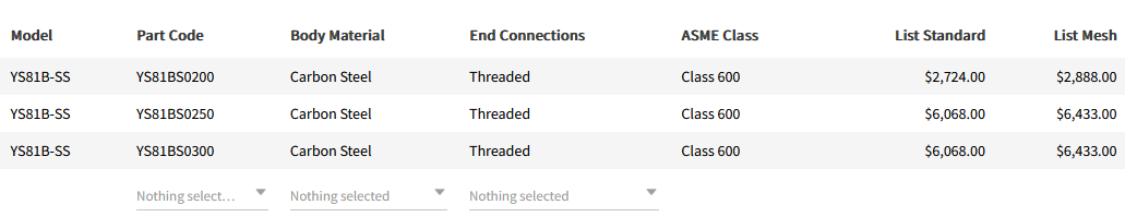 - Stainless Steel - ASTM A351 Gr. CF8M - Class 600