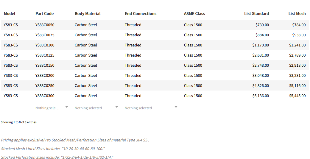 Titan - Model YS83-CS -Y Strainer