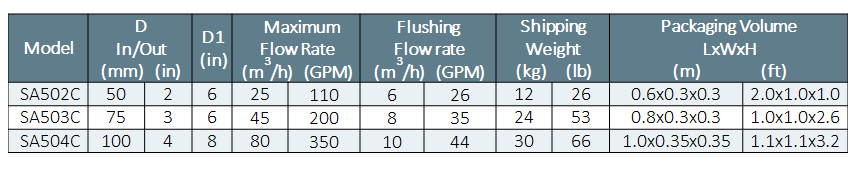 - Clean screen pressure loss: up to 0.1 bar (1.45psi)