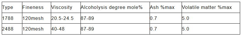 Polyvinyl alcohol is polymer with different degrees of alcoholysis obtained by polymerization of vinyl acetate to form polyvinyl acetate, and then saponification under the action of different alkali levels. Cold soluble polyvinyl alcohol powder is made from partially alcoholyzed polyvinyl alcohol by cryogenic grinding. It is a water-soluble and environmentally friendly white solid powder.