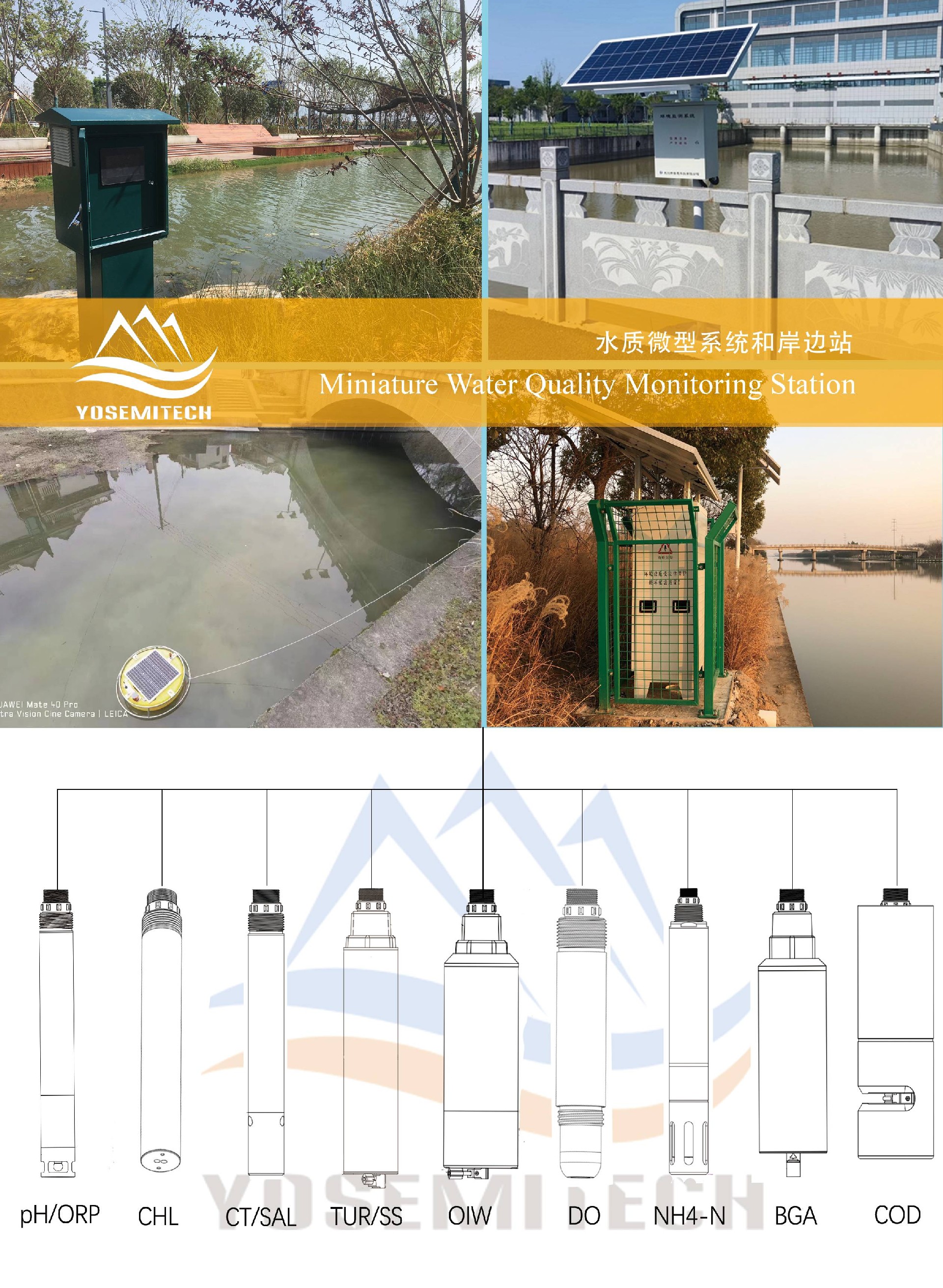 - Wide range of parameters, support most of Yosemitech sensors, including dissolved oxygen, conductivity, turbidity, chlorophyll, blue-green algae, pH, ORP, NH4, UV254 COD and oil in water