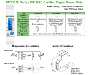 DDS353H-1/2/3 is a single phase DIN Rail meter, 100A, which is a multifunctional meter for energy monitoring. It is only 18mm width, but can support RS485 communication and comply with DIN EN 50022 standard, which is fit for the power distribution system for household and commercial.● It can read grid parameters, analyze the energy quality and load condition in the certain time period.