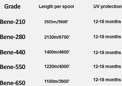 Selective polypropylene resin to obtain the maximum knot strength. Advantaged production equipment ensures stable quality, no rope joint