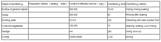 It’s widely used for disinfection on the surface of a general object, food and drink tools, fruits and vegetables, drinking water, textile and various excreta. (the scope of application is defined according to the microbial category)