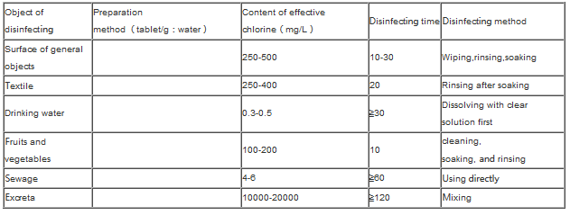 It’s widely used for disinfection on the surface of a general object, food and drink tools, fruits and vegetables, drinking water, textile and various excreta. (the scope of application is defined according to the microbial category)
