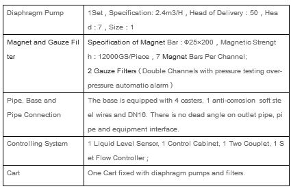 - Dual Channel Filtering: The positive electrode adopts 100-150 mesh filtering, the negative electrode adopts 100-150 mesh filtering, and it is used in parallel. Each mesh filter area is ≥2000cm2.