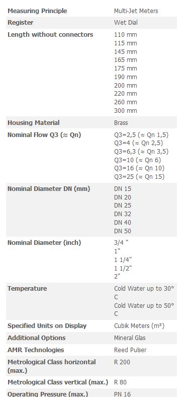 Zenner - Model MNK -Multi Jet Wet Dial Meters