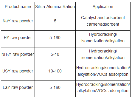 According to customer requirements, our company can provide a variety of Y molecular sieve,NAY?NH3Y?USY?RY,Silica-Alumina Ratio range from 5 to 200,including raw powder, strip-type and sphere shape