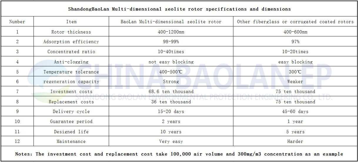 - The pressure drop generated by the adsorption of VOCs by the zeolite rotor can greatly reduce the power consumption and lower the operating cost.