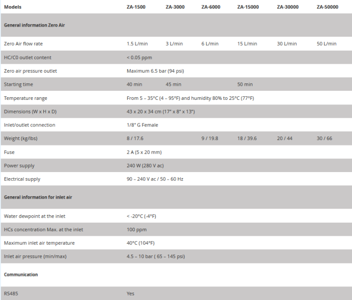 - Purity : HC < 0.05 ppm ; CO < 0.05 ppm