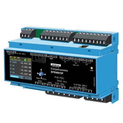 Relays for energy flow EFR4001IP monitor the current flow between public power grid and generating plant / consumer. Operation is made comfortably via integrated webserver or directly at the device. Measured values are displayed neatly arranged at device on monitor. When the own power plant generates more power than actually is consumed it often is more economical to consume the excess energy self. This is especially reasonable when the difference is high between the price you pay to the grid provider and the price the provider pays for fed in energy.