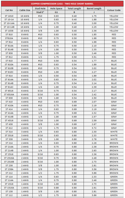Zolex - Copper Compression Lugs - Two Hole Short Barrel