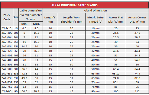 Zolex - Model Al /A2 -Industrial Cable Glands