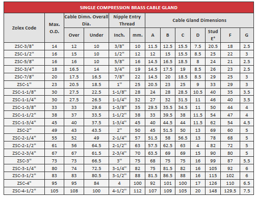 Glands: Material: Finish. Brass: Natural Brass or Nickel Plated.