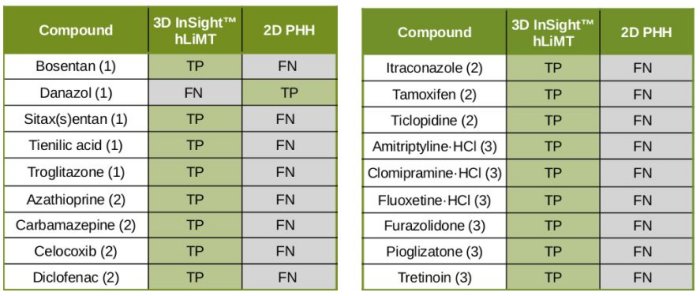 - Predict DILI with twice the sensitivity of standard 2D PHH assays without sacrificing specificity (1)