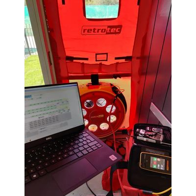Typically a test is carried out by a single engineer using a UKAS calibrated blower door system. The system is essentially a fan mounted within a canvas, that’s installed within an external door or window. The fan is controlled by a fan speed controller, and a number of tubes connected to a multi-channel manometer, which is read and inputted into a software to generate a result.