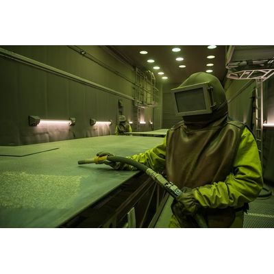 - abrasive blasting of construction elements in the blasting chamber and sandblasting of construction elements to the required degree of cleanliness with abrasive based on copper slag,