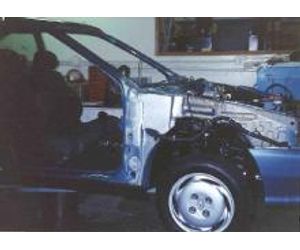 The idle noise was caused by a vehicle body oil can / front end bending mode excited at the engine firing frequency. Due to the interior trim panels, no modifications could be made to the B-Pillar. The A-Pillar stiffener shown in the photo reduced the interior noise level by 20 dB.