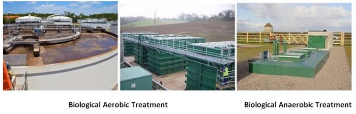 There are two types of biological treatment process; aerobic and anaerobic.
