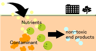 If the indigenous population of microbes is not capable of fully degrading the contaminants, external source of super microbes are applied to the contaminated media along with the nutrients. These externally added microbes multiply and increase in population while degrading the contaminants and using the added nutrients.