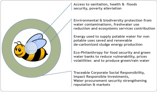 - Products/Services produced with treated effluents can be assessed towards a "cradle to cradle© " approach in cooperation with EPEA Switzerland or reported for their positive impact boosting access to sanitation and sustainable supply chain.