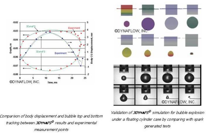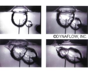 Dynaflow, Inc. conducts a full range of research, development, and consulting studies on bubble dynamics including analytical, numerical and experimental work. Often a combination of these techniques is used to solve a given problem. A wide range of numerical methods, including one-way and two-way bubble/flow interaction schemes, spherical and non-spherical bubble deformation models, boundary and vortex element methods, and Navier-Stokes simulations have been developed to study bubble dynamics in a broad range of flow conditions. Our experimental facilities including high speed photography are used in conjunction with the numerical models to study bubble dynamics as well as to validate the numerical simulations.