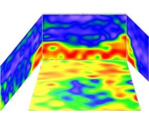 AFTER PICTURE on the right: This moisture map was made after rehabilitation of the house cellar by drying and installing waterproofing membranes on external side of the walls. Measurement was done using the same procedure as before the rehabilitation. The new moisture map, drastically different from the previous one, shows that there is no red areas that indicate moisture.