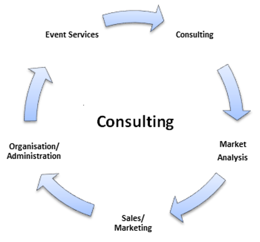 The range of services of Consulting: In addition to its core business - the realization of its own events and congresses as well as marketing its two exhibition grounds - Messe Berlin is now also strengthening its focus on the area of Consulting. For the first time, this new Messe Berlin service segment makes our concentrated trade fair competence accessible to external organizers as well. This includes not only strategic consulting for event development and planning but also business development, marketing and press relations, organization and administration and operative implementation.