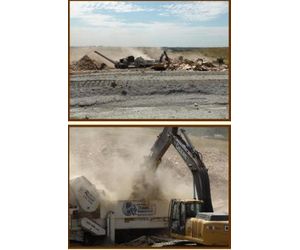 Each of our grinding operations are composed of three machines and a service truck. (i.e., a 973D tracloader, 240 DLC excavator, and a Diamond Z grinder itself which runs remotely.) While the leadman feeds it with the excavator, another man runs the tracloader and pushes material to and from the grinder, loading trucks and trailers. This total operation is completely independent, needing no outside support.
