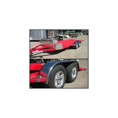 Travln Toys Custom Car Hauler CB Trailers. This trailer is Built tough for Carhauling. Bed sizes range from 17` to 20 feet in lenght. Weighs any where from 1800 to 2100 Depending on the size. Coupler size is 2-5/16 Comes with electric brake, D rings, tool box and LED lights. Call us today for a price quote. we are the only northern California dealer of these custom car haulers unlimited options, colors, and sizes.