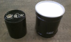 This is an example of a duel rated steel drum. This drum is capable of being packed with solids, or liquids may be poured directly into the package.