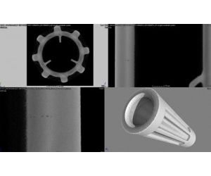Image slices provide high contrast viewing of insides to ensure parts are defect-free.Fig 1: Defect detected in laser sintered steel part, three orthogonal slice views show the defect is only in one layer. Volume viewing software can be provided as well as thin slice image stacks.