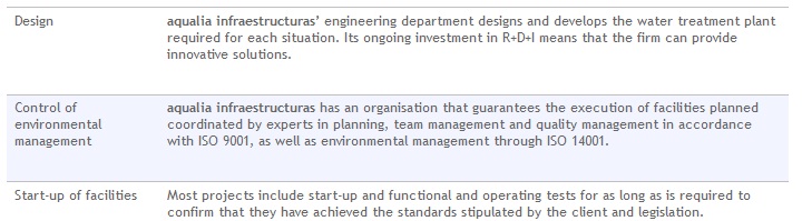 A benchmark in the sector around the worldThe design, technology and construction of plants for the treatment of potable and waste water and desalination, which aqualia performs through its subsidiary aqualia infraestructuras, which specialises in the design and construction of potable water treatment plants, waste water treatment plants, water reuse plants and desalination plants.