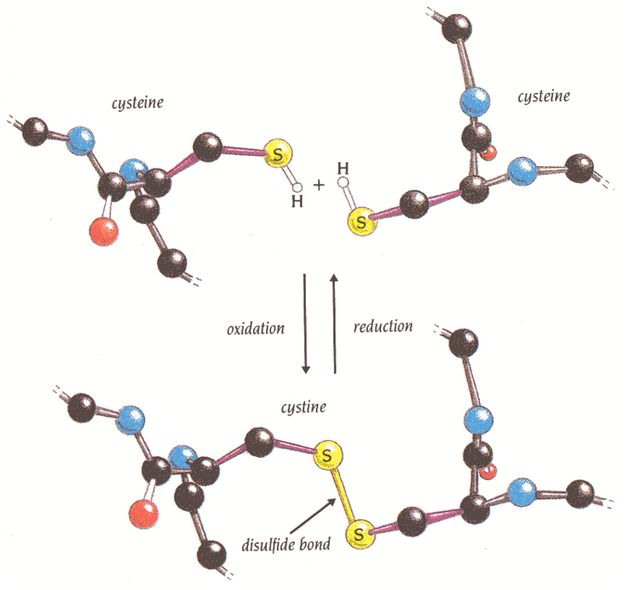 Cystine is composed of two cysteines linked by a disulfide bond, disulfide bonds in proteins are formed between the thiol groups of cysteine residues by the process of oxidative folding. The other sulfur-containing amino acid, methionine, cannot form disulfide bonds. The prototype of a protein disulfide bond is the two-amino-acid peptide cystine, which is composed of two cysteine amino acids joined by a disulfide bond.