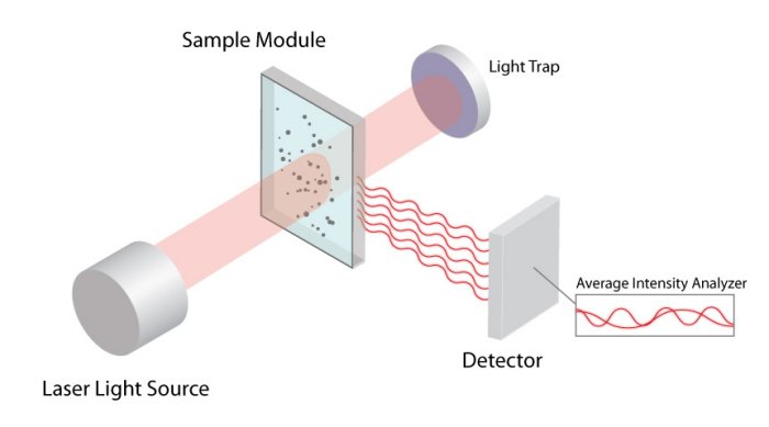 Dynamic Light Scattering requires particles approximately less than a micron in size to be homogenously suspended in a fluid (aqueous or organic). A few examples of suitable systems could include aggregated proteins, pigment components, micelles or emulsion droplets suspended in a continuous phase. The nano-dispersed system is placed into the optical path of a LASER. The LASER is then scattered upon interacting with the particles in the suspension which are moving by Brownian Motion. The scattered light is captured by a detector over the course of the analysis to determine the rate of diffusion (i.e. how fast the particles move within a system due to Brownian Motion) and the average Hydrodynamic particle size (referred to as the Z-Average) is calculated on an Intensity weighted basis using the Stokes-Einstein equation. In simple terms, small particles move/diffuse more rapidly than larger particles. While other reporting formats are available, the most widely accepted and recommended way to report results from DLS is on an Intensity basis using the Z-Average along with the Polydispersity Index (PDI). The PDI is an indicator of the “broadness” of the particle size distribution.