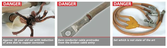 Time also leaves its mark on these devices. Corrosion may reduce cross-sections of earthing and short-circuiting cables thus challenging safety. Only suitable safety devices can prevent dangerous voltages or electric arcs at the work location. This means that devices have to meet the purpose of application, have to be dimensioned correctly, attached according to the installation instructions and be in proper condition.