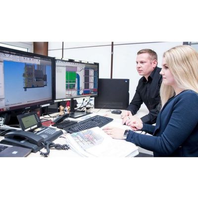 In our office we are using up-to-date software such as AUTOCAD, Inventor, ELCAD, EPLAN, MS-Project as well as different programming languages for the plant control. In addition, we are also realising flow simulations - CFD (computational fluid dynamics) - for the optimisation of flow procedures together with external institutions.