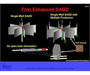 Reservoir simulations of conventional SAGD can be highly unreliable due to the difficulty in estimating formation vertical permeability under steam and its significant impact on SAGD performance. The frac enhanced SAGD being virtually independent of formation vertical permeability, enables reservoir simulations to be conducted with a high degree of confidence.
