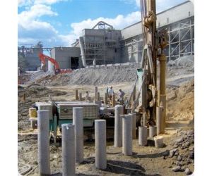 The original scope of work for this project was for the design and installation of approximately 800 micropiles for roughly one half of the intended plant expansion. The micropiles were designed for 350tons axial compression, 125tons axial tension and 15tons lateral load capacity. The design called for the use of a minimum 11-3/4in OD casing and corresponding core steel to meet the required design capacities. With pile lengths from 50 to 150ft in length due to the karst characteristics of the local geology, drill casing availability became a major concern. With shortages in the supply of the 11-3/4in pipe, Brayman utilized other available sizes (11-7/8in & 12-3/8in) to meet the demands of the project.