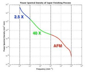 Super Finishing of surfaces is often required for applications where it is critical to reduce the scattering of light as it passes through the surface of an optic. ZYGO`s Super Finishing (also known as Super Polishing) process produces extremely smooth surfaces over a wide power spectral density (PSD) band on materials such as fused silica, sapphire, YAG, etc. Our unique process is capable of producing a surface roughness of < 1 Angstrom (< 0.1 nm), over spatial periods ranging from 10 nm to 1 mm.