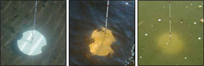 Secchi depth is valuable in determining lake productivity and water clarity. Secchi depths measure water turbidity and transparency which can vary according to many factors and can be helpful in indicating the overall health of a resource. In waters with low concentrations of phytoplankton and reduced total suspended solids secchi depths are typically high, while waters with high biological productivity and increased turbidity typically have lower Secchi depth readings.