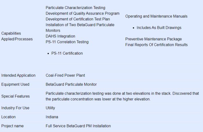 For this project, the team at Mechanical Systems, Inc., provided a full service systems integration of two BetaGuard Particulate Monitors at a coal-fired power plant in Indiana.