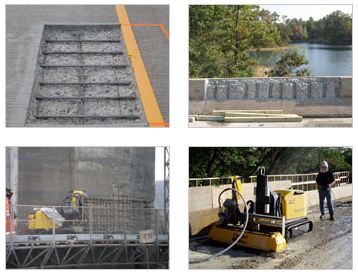 Hydro demolition is generally used to describe the process of using high-velocity water jets to remove or demolish concrete. Hydro demolition is particularly effective as a restoration tool to remove deteriorated, delaminated or contaminated concrete. A surface prepared using hydro demolition provides the best possible bond for all types of repair material. The aggregate protruding from the existing surface provides excellent shear resistance across the bond line.