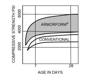 Fabric-formed fine aggregate concrete possesses superior physical properties. The compressive strength of fine aggregate concrete pumped into fabric forms is typically 1.5 to 1.75 times greater than companion samples taken from conventional concrete test cylinders. In addition, the fine aggregate concrete has less than 5% water absorption. This, combined with a "case-hardening" effect, produces a concrete that is abrasion resistant, durable under freeze-thaw action, resistant to "breakup caused by thermal cracking, highly impermeable, and resistant to acid, alkali salt, organic solvents, biological organisms and petrochemicals and permits FFC revetments to be constructed without reinforcement steel.