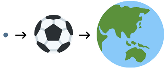 The size of a nano particle is proportionally the same with respect to football than the size of football with respect to the globe.