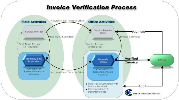 - Suppliers and service providers provide a field ticket to the Remedy Well site Supervisor who ensures it is reasonable and accurate.