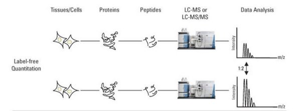 Creative Proteomics provides Label-free methods for both relative and absolute quantification, which a rapid and low-cost alternative to other quantitative proteomic approaches.Label-free quantification is a method in mass spectrometry that aims to determine the relative amount of proteins in two or more biological samples. Unlike other methods for protein quantification, label-free quantification does not use a stable isotope containing compound to chemically bind to and thus label the protein.