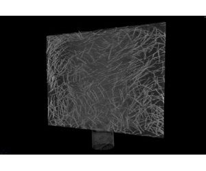 Large part scans: any object that fits in a cylinder 700 mm high and 300 mm in diameter. With some special effort up to 1000 x 600 mm is possible at 150 micron resolution.Figure 11: Concrete panel approximately 250 x 250 x 10 mm, metal fibre reinforced